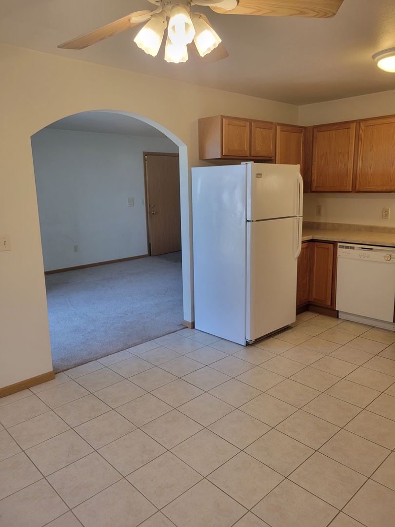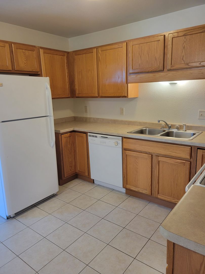 Beautiful like new two bedroom with garage, one bath, a/c, kitchen with stove, refrigerator, dishwasher, in-floor radiant heat,patio with storage area, coin operated laundry is just a few steps away.